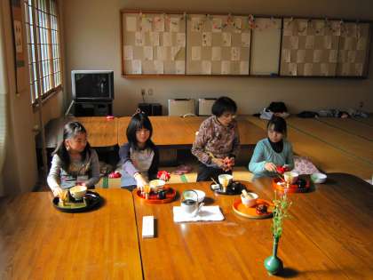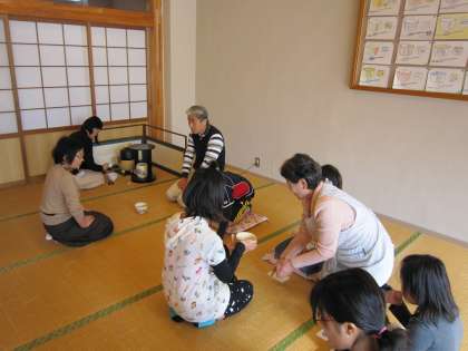 第4回の茶道教室を福西女性会の皆さんのご協力を得て行いました。。4回目ということもあり,お茶のいただき方や運び方も1回目に比べスムーズになっています。今年初めて参加した子は「作法は難しいけれど,楽しいです。」と言っています。また,6年生は今日も自分でお茶を点てました。見ていると上手にお茶を点てていました。