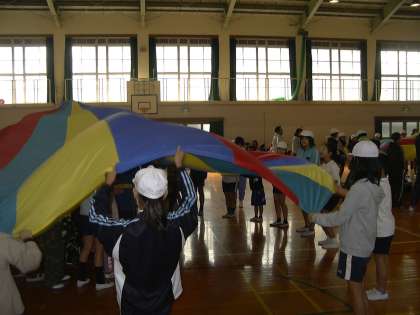 つくし学級のみんなは,桂坂小学校に行き,西京西支部育成学級や桂坂小学校のお友達といっしょにダンスをしたりバルーン遊び・デカスカリレーをしたりして交流を深めました。参加した感想を聞くと,「楽しかった。」「友達もできたよ。」と言っていました。