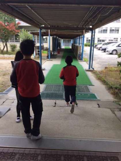 それぞれが計算で出した歩幅をもとに,学校中のいろいろな場所の長さを求めることができました。