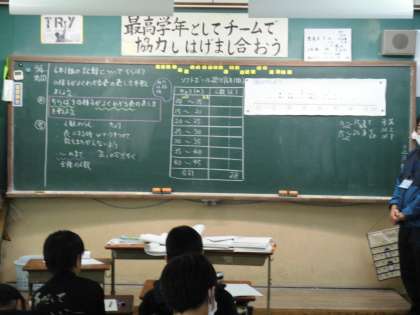 もともとのソフトボールの記録表から区間に分けた表に変化させるのが,非常に見落としが多くなってしまいます。よ〜く見て,よ〜く考えて情報を処理しています。やはりここでは集中力が大切だと感じる光景でした。