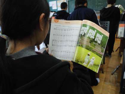 音楽の様子です。今はリコーダー,合唱,楽典を学習しています。