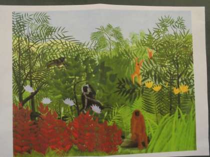 国語「この絵,わたしはこう見る」の学習の様子です。写真にある絵を見て,読み取ったことと感じ取ったことを整理し,順序立てて文章にしました。そして今日は,その文章の交流会を行いました。