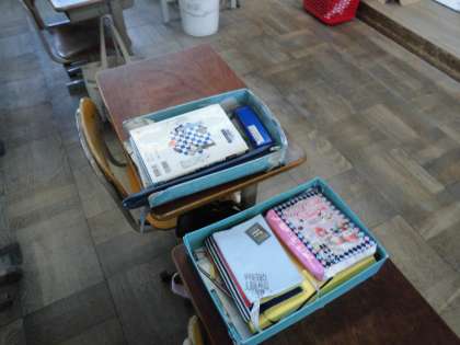 第2週目お道具箱スッキリタイムの様子です。どうでしょう。このお道具箱を見て,何を感じますか。そうです。先週に比べてスッキリしているんです。
