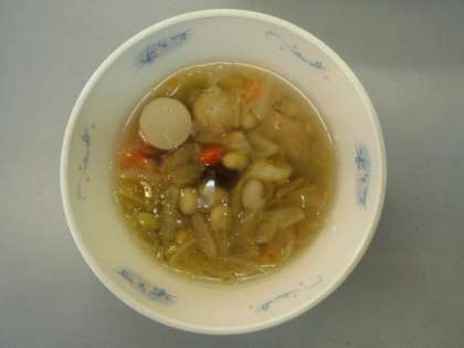 「ソーセージと野菜のスープ煮」は,体を温める食べ物です。これを食べると寒い冬を乗り切る力をつけることができます。
