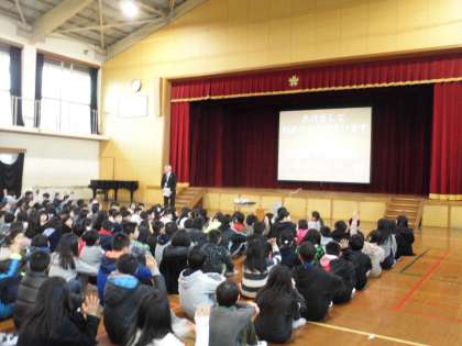 朝会では,今年が「戌年」であることから,校長先生が子どもたちに『十二支の物語』と『ワンダフルな年にしよう!』についてお話しされました。