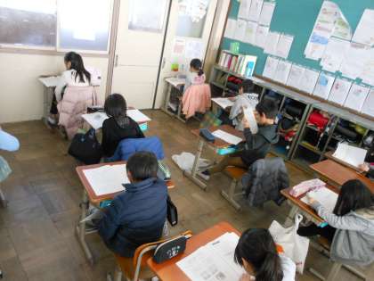 解答用紙・問題用紙とわかれた本格的なテストを前に,苦労しながらも身につけた力を試そうと頑張って取り組んでいます。