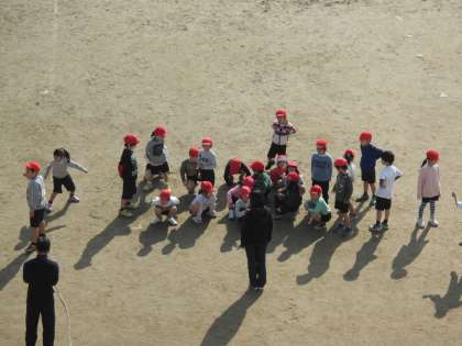 1年生体育では「大縄」の練習をしていました。2月には校内でともだち教室対抗の大会が行われます。それに向けてナイスTRYです。
