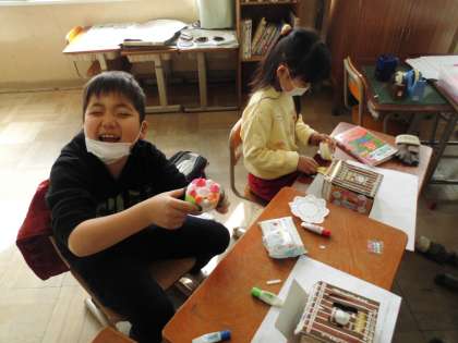 少し静かだった教室は,子ども達の元気いっぱいの声で満ち溢れていました。図工科「ケーキ屋さん」をみんなで一生懸命作りました。「こんなケーキができた!」「おいしそう!」「すごい!すごい!」ととても楽しそうでした。みんなで頑張ってオリジナルケーキを作っていきましょうね。
