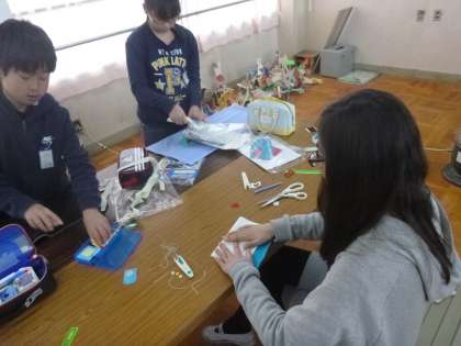 試合に勝つためのお守りや筆箱など一人一人の思いがこもった作品ができつつあります。