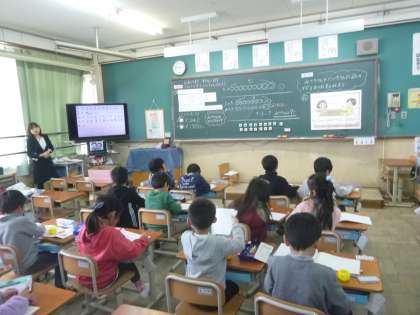8日(木)は校内研究で1年生の算数の授業を学校の先生方に見てもらいました。