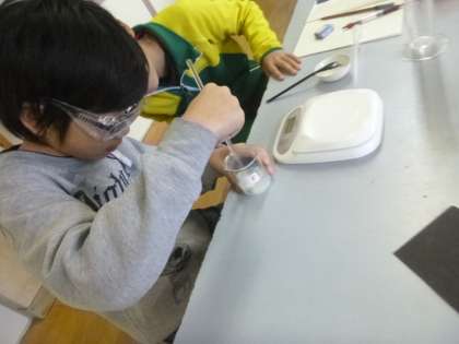 今日も自分たちで実験方法・実験道具を話し合い,実験を行いました。