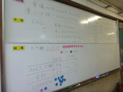 クラス全体の結果を共有し,みんなで結論を導き出します。