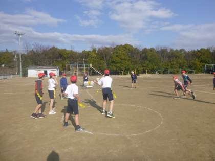 今週はタグラグビーで6年2組とチャレンジマッチがありました。