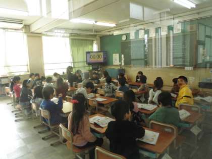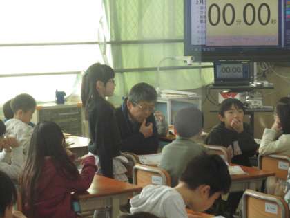 1年生の学習の様子です。1年生では,聞き手のことを考えた話し方を大切にしています。恥ずかしい思いがあっても,一生懸命相手に伝える思いをもって話す。素敵です。また,そうすることで聞いている人たちも集中して聞いています。このように人を大切にするといいTEAMづくりにつながります。