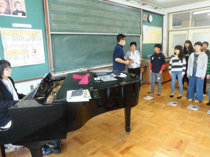 今日の谷川先生の名言です。あまりにも学年の歌がうまいということで,どんどんレベルを上げて指導していただいています。今日もいつものように,レベルを上げての練習。