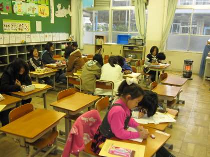 日本文化・囲碁将棋クラブでは,百人一首や将棋をしています。将棋はこまの動かし方を知ることから始めた子どもたちもいました。百人一首は上の句と下の句を覚えて上の句を聞いただけで「はい」といってとっています。また,マンガクラブでは,メインキャラクターを一人ずつ考えて描いていました。どの子も笑顔で描いていました。