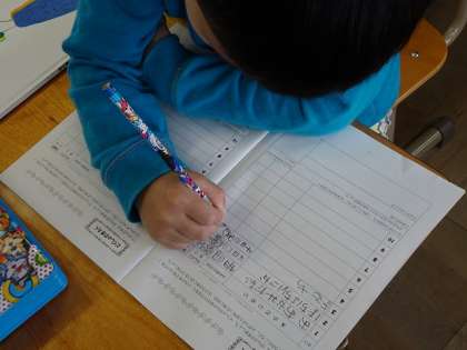 先週,図書館の使い方を学習した1年生。休み時間にもどんどん利用しているようすです。配布した読書ノートにも一生懸命記録をしています。