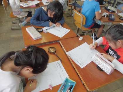 虫めがねを使うと,細かい模様やデコボコがたくさん見られました。