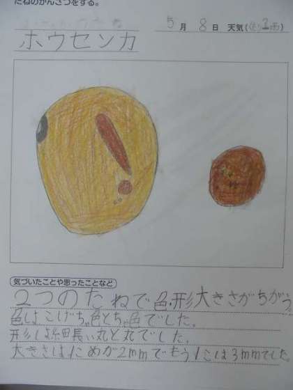 子ども達が予想していたよりもホウセンカの種は小さく,実物を見せると