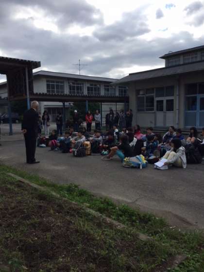 出発式では校長先生のお話を聞いたあと,代表の児童が堂々と修学旅行でがんばることを宣言してくれました。