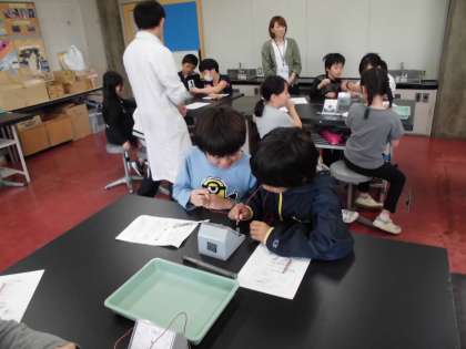 5月8日(火)に社会見学に行きました。午前中は科学センター学習で前半はプラネタリウムの中で春の星座や月の動きなどを観察しました。後半は「こちら子ども発電所」というテーマでコイルとどう線を使って発電にチャレンジした後,水力・風力・火力などの発電のしくみやそれぞれの発電の良いところ・悪いところについて話し合うことができました。