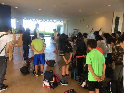 お世話になった宿舎の方にお礼を言い,みんなで今日のめあてを確認しました。