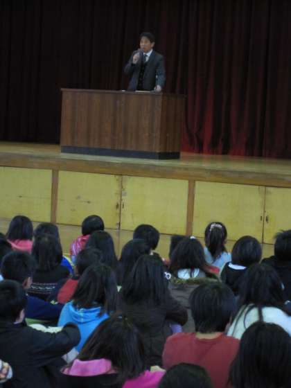 子どもたちは,学校長の顔を見つめながら,しっかりと聞いていました。