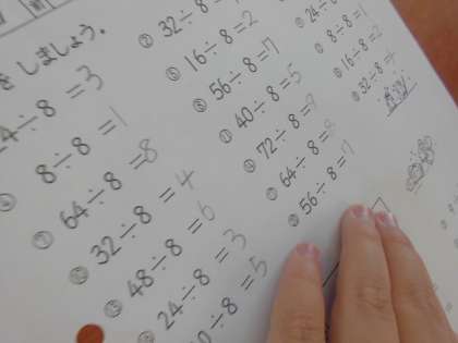 チャレンジタイムでは,5分間のわり算計算に取り組んでいます。