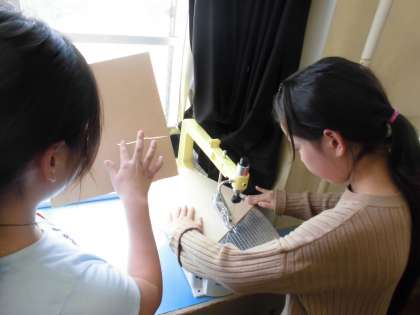 今日から図工では「糸のこスイスイ」の学習が始まりました。初めて使う電動糸のこぎりと糸のこぎりにドキドキの子ども達。おっかなびっくりでやり始めた子ども達ですが,慣れるにつれて,電動糸のこぎりで曲線を上手に切ったり,額に汗を浮かべながら糸のこぎりを一生懸命ひいたりしていました。
