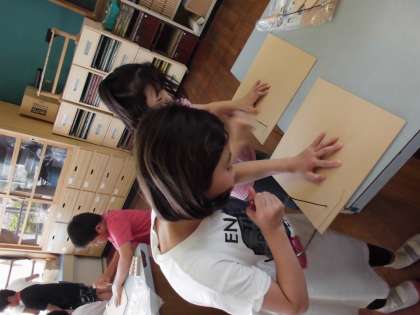 「これイルカに見える!」「これなんやろ〜?」子ども達の楽しい声が図工室に響きます。来週は色付けまでする予定です。どんな作品が誕生するでしょうか?とても楽しみですね。