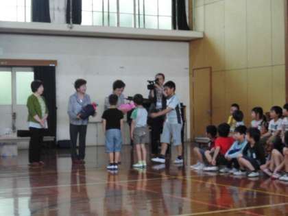 今日は「1年生を迎える会」で,2年生〜6年生までのお兄さん・お姉さんから,入学を祝ってもらいました。それぞれの学年からの出しものに,1年生は大変興味深く見入っていました。これまで練習してきた1年生からのお礼の発表も,とても上手に発表することができました。