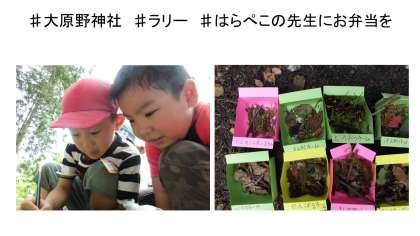 ラリーのなかに,先生からのお題がありました。それは,「お腹が減って仕方ない先生のために,しぜんを材料においしそうでおなかいっぱいになるお弁当」をテーマに造形遊びを行いました。