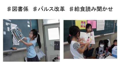 図書係が新たな企画でクラスを変えようとしてくれています。給食時間の読み聞かせです。曜日ごとに担当を決めて,読み聞かせをしてくれています。まだまだ練習するところはありますが,とっても素敵な時間をつくってくれています。