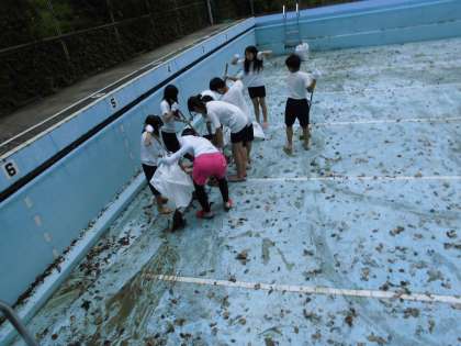 プール掃除,がんばりました!