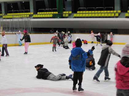 初めてスケートをする子どももいましたので,はじめはみんな手すりを伝わって歩く練習から始めました。少し慣れてくると思い思いに滑っていきました。