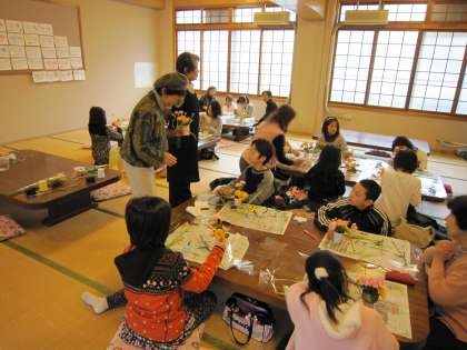 福西女性会の皆さんのご協力で,生け花教室(フラワーアレンジメント教室)を行ないました。