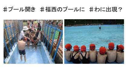 今日から水遊びが始まりました。とってもお天気…といいたいところですが,途中から曇天に。しかし,1・2年生チームは元気よく水遊び。みんな嬉しそうな表情で,プールとなかよくしていました。