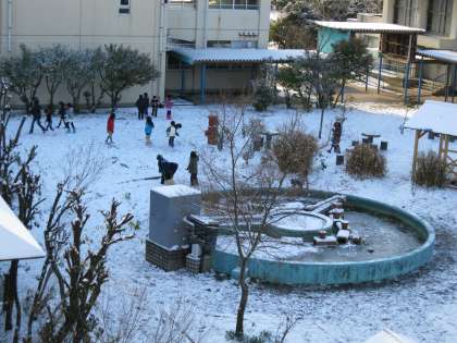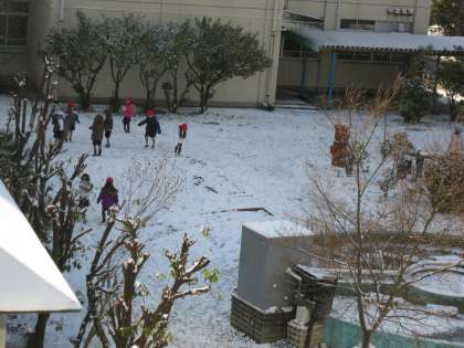 昨日からの雪で,道路や運動場は一面雪景色となりました。子どもたちは元気にこの雪景色を楽しんでいました。