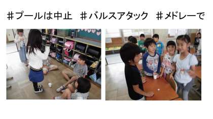 しかし,1時間目はバルスアタックメドレー!まずは,目の準備運動。そしていつもの数字見つけアタック。そのあとは,バルスコインアタック。コインを目の高さから紙コップに入れるものです。みんななかなか盛り上がる!難易度をあげると,さらにヒートアップ!とてもいい時間でした。