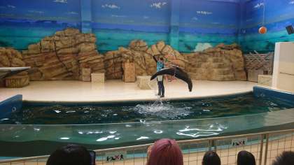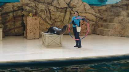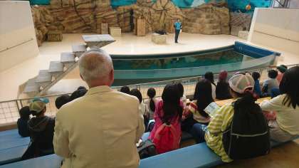 みさきの家を出発して,鳥羽水族館にやってきました。今アシカショーが始まりました。とても賢いアシカさんに,みんな驚いています。