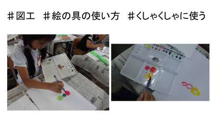 今日は待ちに待った「絵の具セットの日」。朝から気になって気になってしょうがない様子。みんな5時間目になったら,ものすごいスピードで準備をはじめました。使い方や準備後片付けについてをメインで活動したので,次の学習でくしゃくしゃぎゅに色をつけていくのが楽しみです。