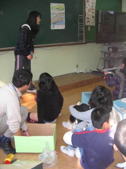 休み時間には,雪のまだ残る竹の里小学校の中庭でうんていをしたりタイヤの遊具をわたったり,寒さに負けず元気いっぱいでした。