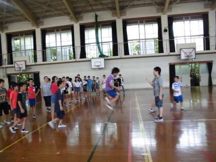そこで,クラス全員で大縄とび8の字連続とびに取り組みました。