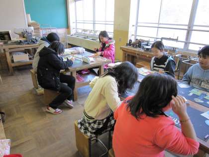 「ここはどうしたらいいかなあ。」と指導者の先生と話し合いながら,一人ひとり思いをこめて描いています。