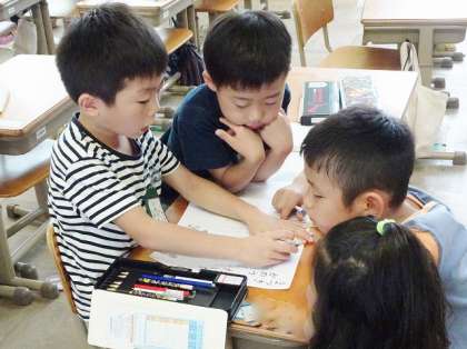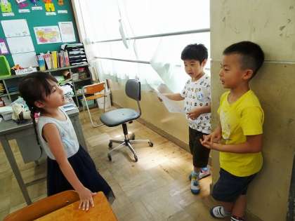 国語科『おむすびころりん』の音読発表会に向けて,練習をしています。発表では,好きな場面を選んで,グループごとに読み方を決めています。