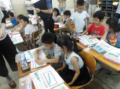 1年2組で算数科の研究授業がありました。単元は『ひき算』です。数図ブロックを動かして,ひき算の答えを確かめていきました。みんな積極的に手を挙げて発言することができました。