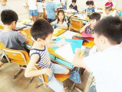 と,友だちが作ったものを見合って,素敵なところを発表しました。
