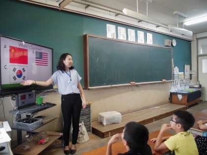 自己紹介では,自分の国のことや家族のこと,スポーツ等について写真を見せながらお話をしてくれました。子ども達は新しい先生に興味津々で,質問もたくさんしていました。