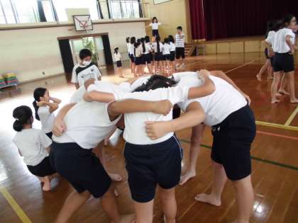 いよいよ組体操はクライマックス「未来へ」をテーマにした演技の練習です。
