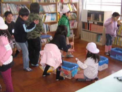 元気いっぱいの「ふくにしフレンドパーク」。楽しいお店がたくさんありました。お客さんに,遊び方やルールをていねいに説明してくれるのでとてもよくわかります。初めてのキッズタウン福西とは思えません。「はっぱつり」のお店が大人気でした。